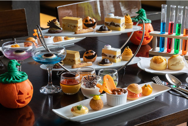 まるで化学実験!色が変わる目玉のグラススイーツや指の形をした不気味なお菓子も登場。ジャック オ ランタンをモチーフにした可愛いスイーツも楽しめるアフタヌーンティー