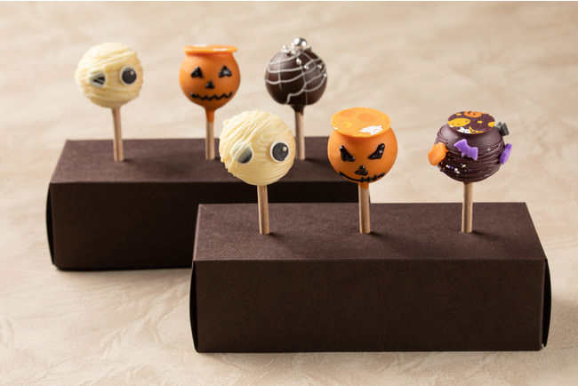 お子様にも大人気の一口サイズの可愛いらしいスティック付きチョコレート。今年はストロベリー、キャラメル、ミルクチョコレートの3種類の味をミイラやジャック オ ランタンに見立ててご用意いたします。
