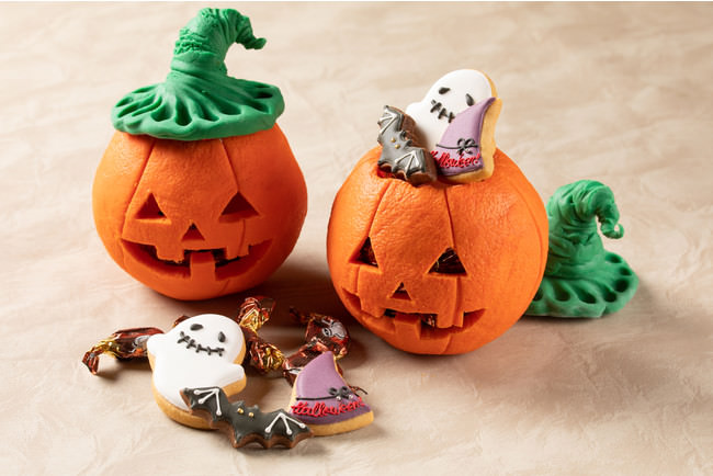 プラスチックチョコレート(チョコレートに砂糖や水あめを混ぜて柔らかくしたもの)で作ったジャック オ ランタンの中に、おばけクッキーやキャンディを詰め合わせた遊び心あふれる手土産としても喜ばれるスイーツです。
