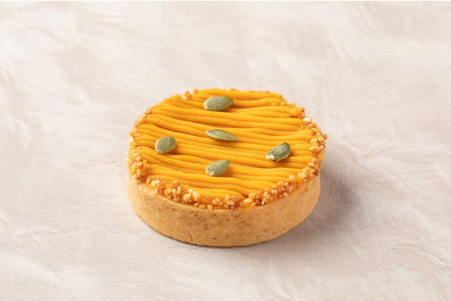くりりんという品種のかぼちゃをつかった甘いくちどけのパンプキンタルトです。クリームチーズ、ミルクジャム、パンプキンペーストのタルトに、さらに上からパンプキンペーストを絞った、濃厚でしっとりとした味わいです。