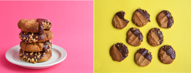 通常クッキーのレシピは、卵やオイルをたっぷり使用しますが、ピーナッツバターは油分も含むため、お菓子に使うときはオイルの代わりにもなり、レシピの時短にも繋がります。また、ピーナッツバターは粘度やコクも出るので、さっぱりしがちなプラントベースのお菓子づくりにはたいへん相性が良いです。