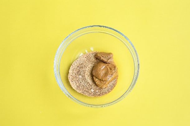 1. ピーナッツバターと味噌、ブラウンシュガーをボウルに入れすりまぜる