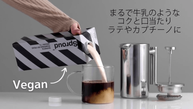 Sproudは、サステナブルな新素材として注目されている「黄えんどう豆」を使用。従来の植物性ミルクの悩みに着目して開発されました。