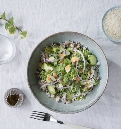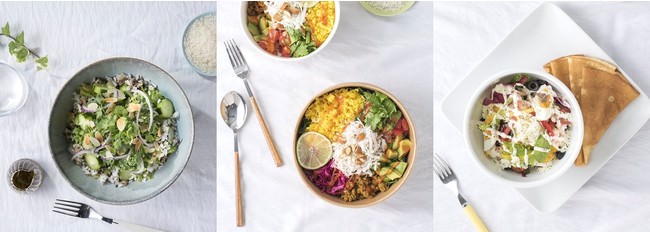野菜やタンパク質、ナッツ類など様々な具材におコメをプラスしたライスサラダは、栄養バランスの良いヘルシーなボウルメニューです。