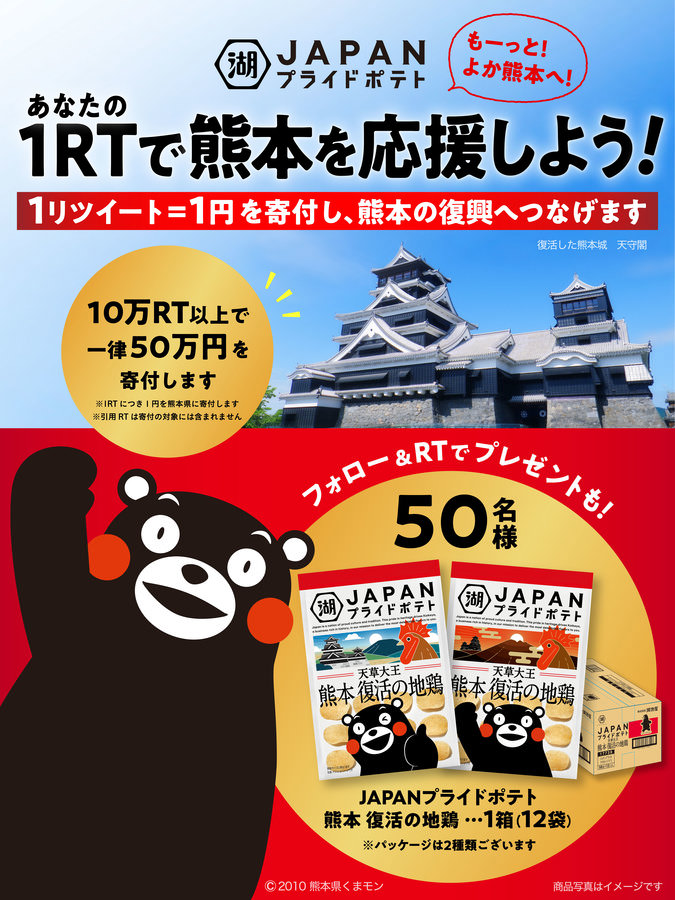 1リツイートにつき1円を寄付 「JAPANプライドポテト 熊本」発売記念