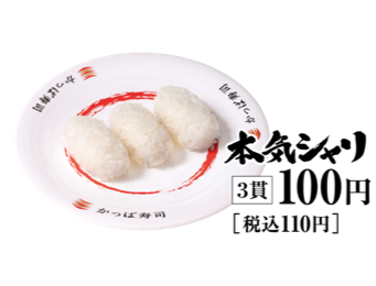 - かっぱ寿司のシャリは回転寿司チェーン初!※ 単一ブランド米「はえぬき」使用!ネタなしシャリだけ!?の『本気シャリ』実は大好評!!