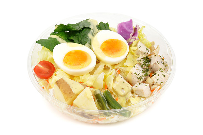 卵、野菜、じゃがいも等を盛り合わせた、いつもの食材でボリュームあるメニューを提供できる注目の新サラダです。