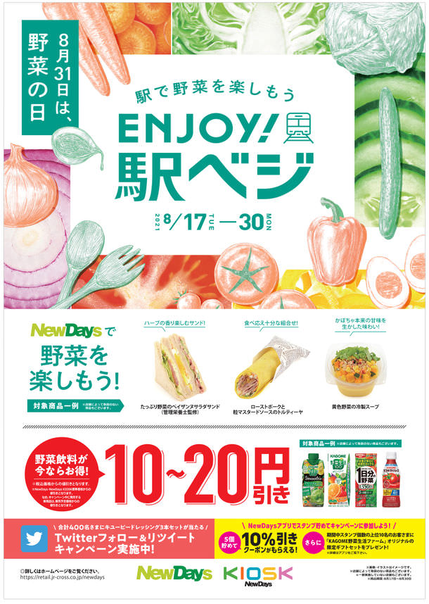 ※対象の野菜飲料は店頭のPOP、またはNewDaysホームページ( https://retail.jr-cross.co.jp/newdays )でご確認ください。