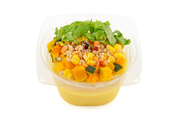 かぼちゃ本来の甘味を生かしたスープに玉葱を使用することで、さらに甘みを引き出しています。かぼちゃダイス・コーン・雑穀を合わせ、彩りと食感も楽しめます。