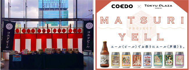 新型コロナウイルス感染拡大の影響で、渋谷の「金王八幡宮例大祭」をはじめ、日本各地のお祭りが中止になるなか、特別醸造したクラフトビール「祭エール-Matsuri Ale-」で、お祭りの応援と復活を祈念してエールを送る「COEDO MATSURI YELL PROJECT」が開始。東急プラザ渋谷の「街のつながりを大切にしたい」という想いと COEDOの「お祭りにエールを送る」というプロジェクトの理念が合致し、今回のコラボレーションが実現しました。