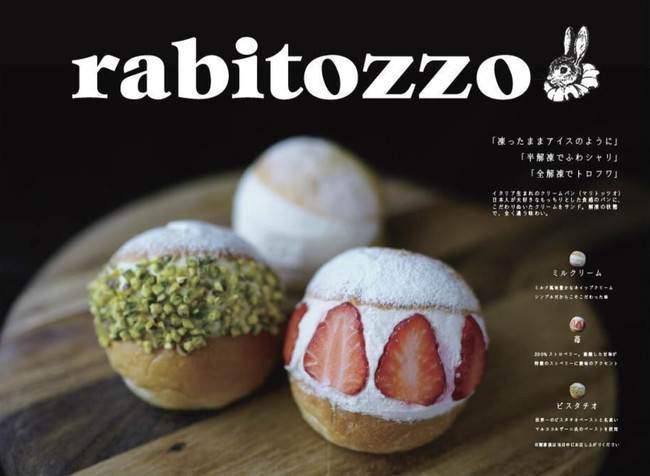 イタリア生まれのクリームパン「マリトッツォ」をパティシエパンオリジナルとして開発した「ラビトッツォ(英名:rabitozzo)」。うさぎの耳のようないちごの断面が特徴的な商品です。マリトッツォとは、中にたっぷりクリームが入っているイタリアのパンですが、パティシエパンではフランス生まれのブリオッシュ生地とフレッシュなクリームを合わせています。