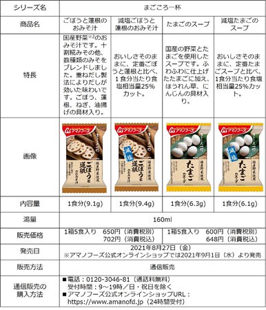アサヒグループ食品株式会社(本社 東京、社長 川原浩)は、「アマノフーズ」ブランドの「まごころ一杯」シリーズの定番ライン・減塩ラインをリニューアルし、8月27日より通信販売限定で発売します。また同時に新商品『まごころ一杯 ごぼうと蓮根のおみそ汁』『まごころ一杯 減塩ごぼうと蓮根のおみそ汁』『まごころ一杯 たまごのスープ』『まごころ一杯 減塩たまごのスープ』4品を8月27日より通信販売限定で新発売します。