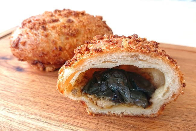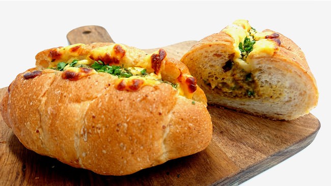 定番の塩パンに辛口のグリーンカレーとチーズをトッピング。絶妙のハーモニーを楽しめる一品。