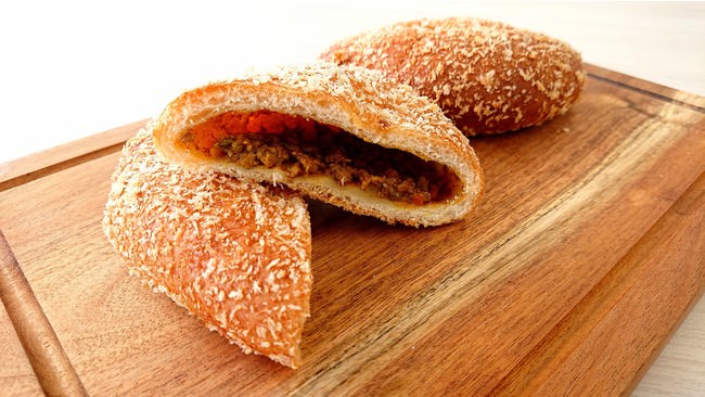 野菜とビーフの入ったスパイシーな焼きカレーパンと辛いパンがお好きな方におすすめの焼きカレーパン。