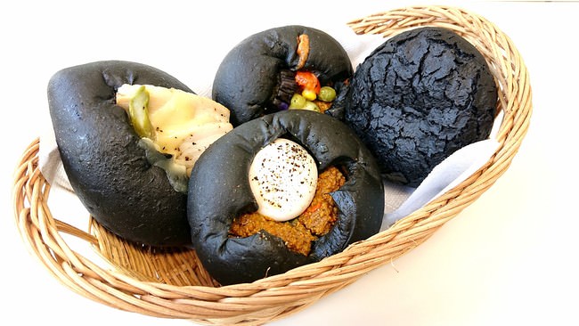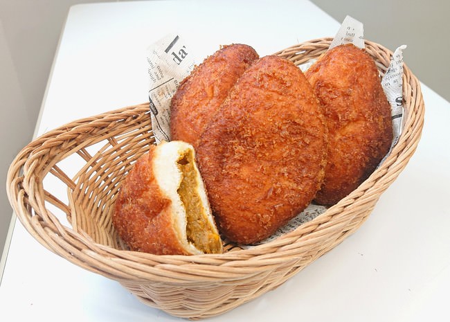 竹炭を使い、サクサク感のある黒い生地に仕上げた見た目にも個性光るカレーパンです。