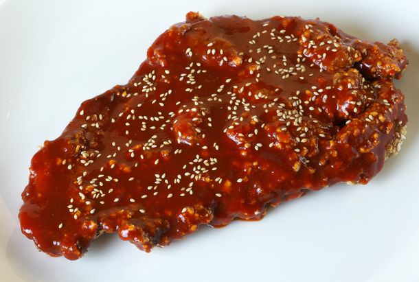 当店ではそんな人気グルメをコラボレーションした、「ヤンニョム台湾ジーパイ」を8月17日より販売します。まずはその見た目、顔より大きい巨大ジーパイはヤンニョムの真っ赤なタレがかかっており、より大きなインパクトになっています。食べると、まずはヤンニョムの甘辛い味が食欲をそそり、噛むほどに台湾特有の香辛料のスパイシーな香りが広がります。国産の鶏むね肉を100%使用、注文を受けてから揚げるため、いつでも揚げたてでアツアツサクサクです。
