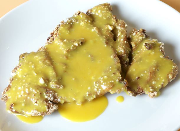 同時発売する「ハニマヨ台湾ジーパイ」は、はちみつとマヨネーズの甘じょっぱい味わいです。こちらは黄色の台湾ジーパイ。赤いヤンニョムと共にカラフルでSNS映えするグルメです。