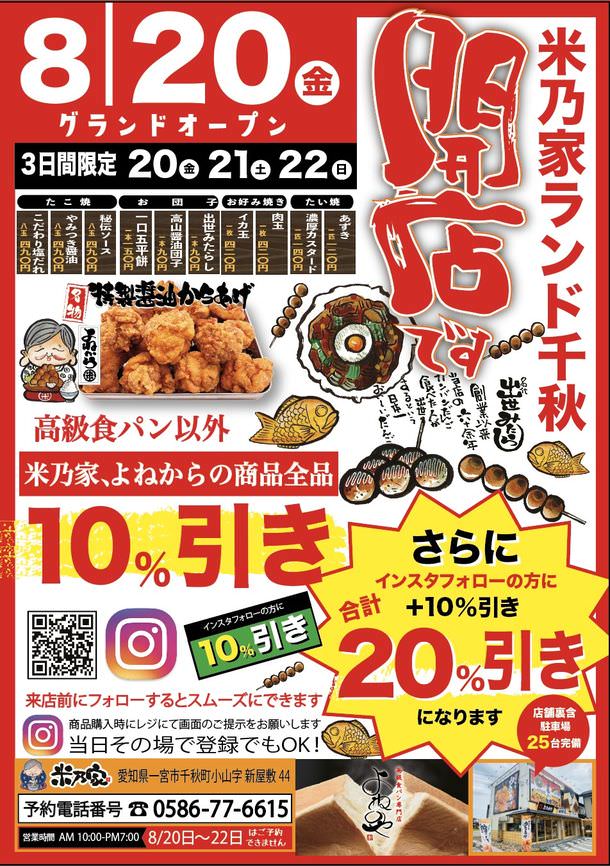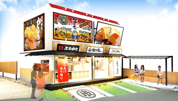 このたびの「米乃家LAND」では、従来の団子・たい焼き・お好み焼き販売店「米乃家」のみならず、新業態となるからあげテイクアウト専門店「よねから」1号店、高級食パン専門店「よねのや」を併設した“テイクアウト複合専門店”としてオープンいたします。