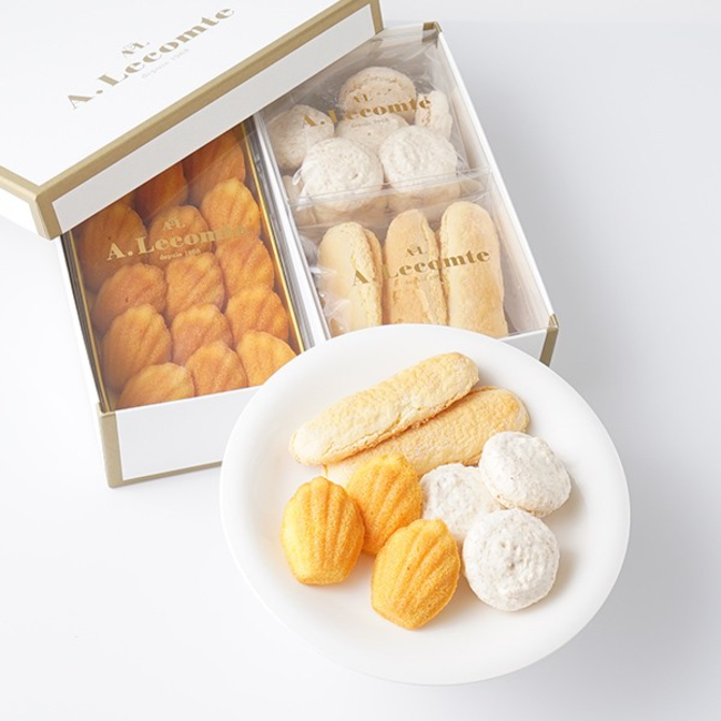 今回Cake.jpで販売する「A.LECOMTE(ルコント)」の人気商品より、「50周年記念ロゴ オリジナル缶入ギフトセット」と「プティ フール セック 詰合せ」をご紹介します。どちらも「A.LECOMTE(ルコント)」の定番焼き菓子を楽しめるセットで、ギフトにもぴったりです。