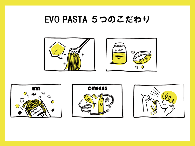 商品第一弾であるEVO PASTA(エボパスタ)の開発の背景には、健康ブームによりフィットネスを始めジム通いをされる方が増えた一方、外出自粛により運動不足を懸念される方も多くなったことにあります。