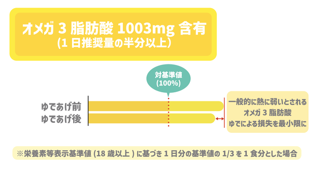 オメガ3 脂肪酸は一般的に熱に弱いとされておりますので、パスタのようにゆであげる食品には不向きとされておりました。