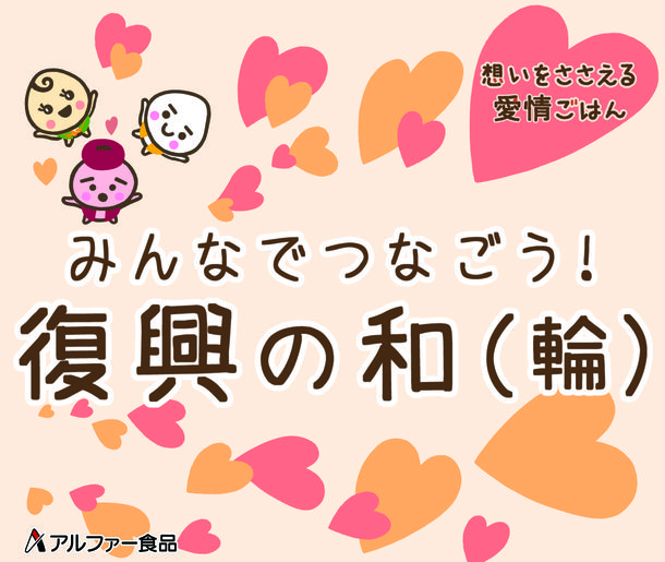 これをアルファー食品の「復興の和(輪)」と掲げ、非常食の啓発活動とともに少しでも復興へ貢献をしたいと考えています。