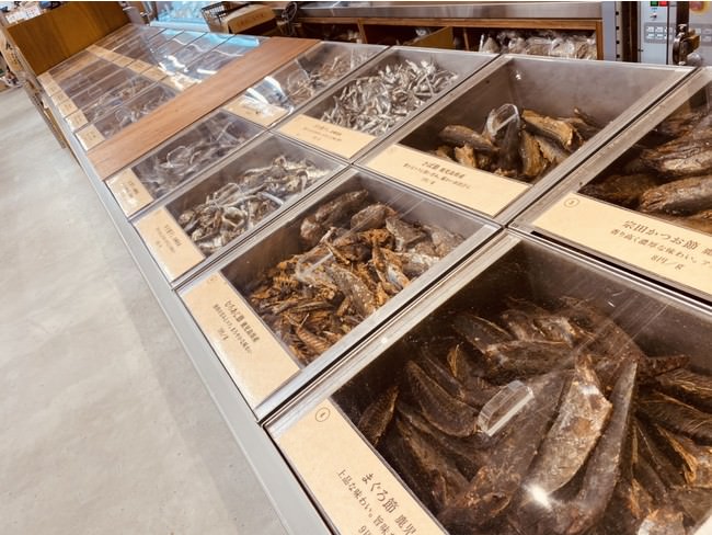 ・国産原料を150年の歴史で目利きし厳選。鰹本枯れ節、焼きあご、羅臼昆布、どんこに加え、のどぐろ煮干し、かます煮干しなど珍しい素材も含め24種類ご用意しております。