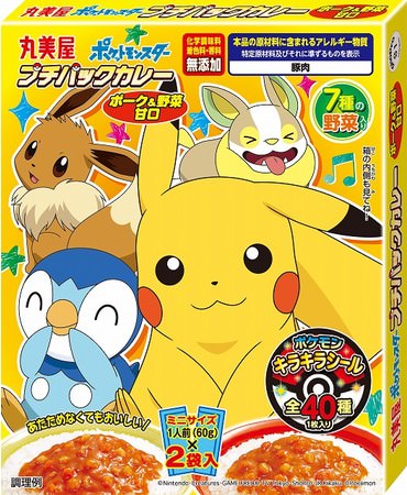 (パッケージのリニューアルは、「ポケモン ふりかけミニパック」「ポケモン カレー<ポーク&コーン甘口>」「ポケモン プチパックカレー<ポーク&野菜甘口>」の3品のみです。)