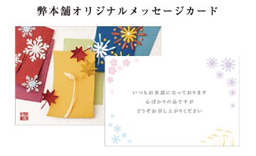 お祝い、お礼、季節のご挨拶、仏事などのカテゴリーから定型文をお選びいただけるほか、お客様オリジナルのメッセージも可能です。