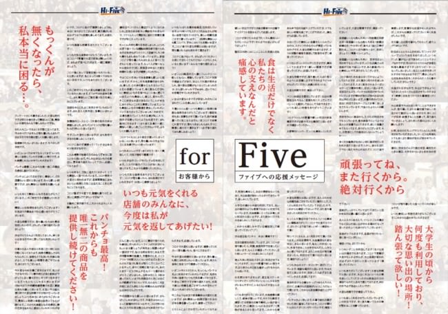 休業期間中にお客様と従業員から集めた店舗へのエールの言葉を敷きつめた、異色のほとんど文字だけの社内報です。「休業明けで不安なスタッフを勇気づけたい」というストレートな目的とターゲット設定が高く評価されました。
