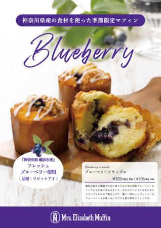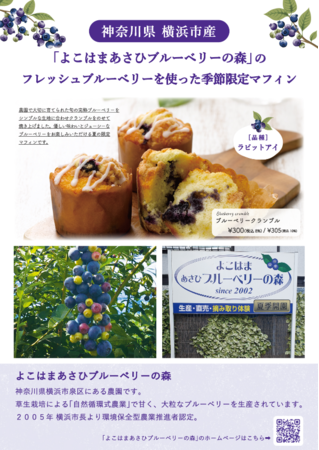 8月は神奈川県横浜市旭区にある「よこはまあさひブルーベリーの森」で今夏に収穫した完熟ブルーベリー「ラビットアイ」を使ったマフィンを提供しています。「ラビットアイ」は、実が熟す前にウサギの目のように赤く色づき、甘味が強いのが特徴で生食も加工にも適した品種です。