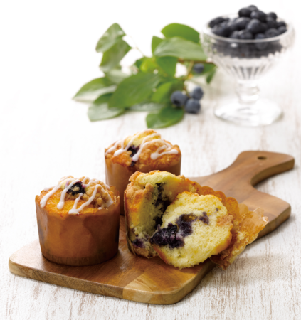 旬の完熟ブルーベリーをシンプルな生地に合わせクランブルをのせて焼き上げました。やさしい味わいとジューシーなブルーベリーをお楽しみいただけるマフィンです。