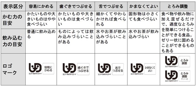 ※1 日本介護食品協議会が定めたユニバーサルデザインフード(以下UDF)の自主規格。かむ力や飲み込む力に応じた4区分(容易にかめる・歯ぐきでつぶせる・舌でつぶせる・かまなくてよい)と、とろみ調整で構成。