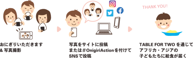 本アクションは、日本の食「おにぎり」をシンボルとし、おにぎりの写真を投稿するだけで、協賛企業の寄付により、開発途上国の子どもたちに給食が届く取り組みです。SDGsのゴールの一つ「飢餓をゼロに」は新型コロナウイルス感染症の流行拡大により解決遅延が懸念されていますが、「関わり方がわからない」「金銭的な寄付は躊躇する」と感じる方が多い現状です。日本人にとって身近なおにぎりで、コロナ禍でも自宅から気軽に参加可能な社会貢献活動として、今年は昨年よりも多くの学校給食を届けることを目指しています。開始初日の10/5に記者発表会を開催いたしますので、ご取材いただけますと幸いです。