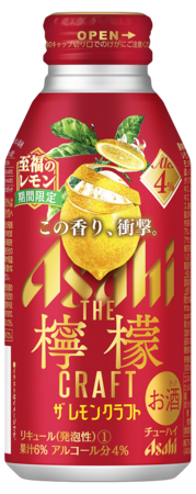 「アサヒ ザ・レモンクラフト」は、レモン本来の風味と香りを追求したボトル缶容器のプレミアムRTDブランドです。今回発売する<至福のレモン>は、3種類のレモン果汁と4種類※2のレモン素材を使用し、秋から冬にかけてゆっくりと楽しめる、濃厚な香味が特長です。アルコール度数は4%で、リキャップできるボトル缶容器を使用しているため、自分のペースでゆっくり程よくお楽しみいただけます。パッケージは赤をベースに、缶体正面にみずみずしいレモンのイラストを配置しました。「この香り、衝撃。」という印象的なコピーを配し、商品特長である本格的なレモンの香りを訴求しています。