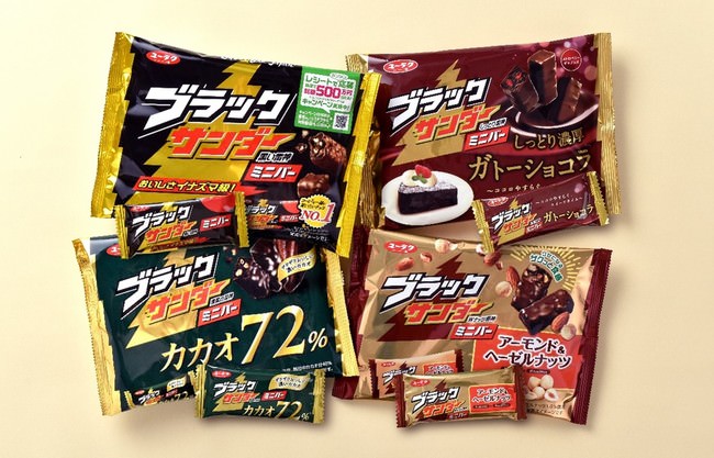さらに同時に、ブラックサンダーミニバーシリーズより発売している、「ブラックサンダーミニバーカカオ72%」と「ブラックサンダーミニバーアーモンド&ヘーゼルナッツ」をリニューアルいたしました。