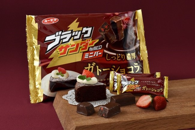 この度、ブラックサンダーミニバーシリーズから、昨年自社目標金額の200%超え(※2)となりご好評いただきました”しっとり食感”と”濃厚なチョコレートの味わい”が楽しめる「ブラックサンダーミニバーガトーショコラ」の”しっとり感”をアップ、より濃厚な味わいに改良し、発売する運びとなりました。