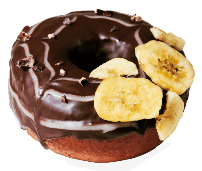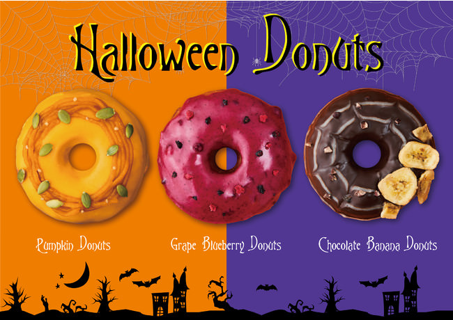 チョコレートをコーティングしたドーナツにバナナグレーズをトッピングし、ハロウィンデザインに仕上げました。バナナチップやスーパーフードのカカオニブの食感や風味も楽しい期間限定のハロウィンドーナツです。