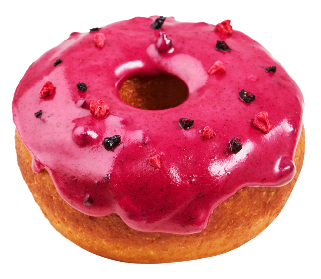 グレープ&ブルーベリーのグレーズに、フリーズドライにした2種のベリーをトッピングしました。 鮮やかなパープルが美しい期間限定のハロウィンドーナツです。