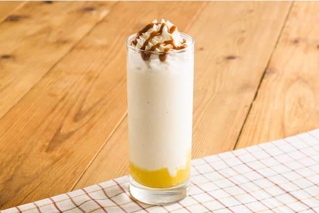 スイートポテトクリームとメープルシロップを加えたシェイク。キャラメルソースとホイップクリームを混ぜてお楽しみください。