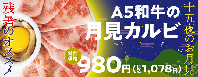 ワタミ株式会社(本社:東京都大田区、以下ワタミ)は全国で展開する、高品質な焼肉をリーズナブルな価格で提供する「焼肉の和民」は2021年9月16日(木)から残暑のオススメ商品として「A5和牛の月見カルビ」を販売いたします。