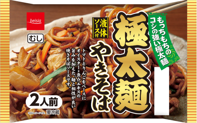 株式会社ベイシア(本社:群馬県前橋市、代表取締役社長:橋本浩英)は、9月16日(木)からベイシア全店(ベイシアマートを除く)で、「極太麵やきそば」を新発売いたします。農林水産省が発表している「食育に関する意識調査(令和3年3月)」によると、新型コロナウイルス感染症が拡大する前に比べて、「自宅で料理を作る回数が増えた」と回答した人が全体の約26%で、自炊に対する意識が高まっている傾向にあります。「極太麺やきそば」は、トマトとりんごをベースにしたどこか懐かしさを感じるくせになる味わいのソースが極太麵によく絡み、お子様から大人まで楽しめる逸品です。焼きそばは、アレンジの幅も広いので、ぜひ日々の自炊メニューの1品としてお試しください。