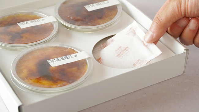 クレームブリュレのカラメルは水分に弱く、提供後、すぐに溶け始めてしまう繊細なスイーツです。そのため、イートイン中心に提供されており、コロナ禍により、外食を控えるようになっている現在、食べる機会が減っています。「お店で食べるようなパリパリ感のあるクレームブリュレをおとりよせで食べたい!」という難しい課題を解決すべく、試行錯誤した結果、丁寧な3度がけのキャラメリゼと、アパレイユの配合の見直し、常温解凍によって、ご自宅で楽しめる本格的なクレームブリュレが完成しました。