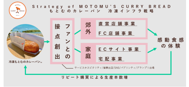 最後に、この度決定した、“配達プラットフォーム企業”である明和物産株式会社との提携により、冷凍カレーパンの宅配が実現されました。これにより、沖縄から各家庭の冷凍庫へ、もとむのカレーパンを直接お届けすることが可能になります。今後は、家庭で常備される冷凍食品の代名詞となることを目指し、また、ファンにとって、商品を切らすことのないサブスク機能も採り入れながら、“感動食感”の連鎖を広げられるよう、事業を加速化させていきます。