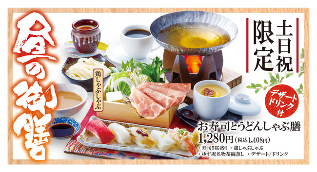 土日祝限定)お寿司とうどんしゃぶ膳 1,280円(税込1,408円)