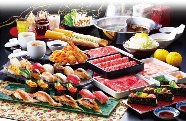 創業から続く和食屋のノウハウを結集した“寿司・しゃぶしゃぶ”の食べ放題専門店。しゃぶしゃぶは5種類のおだしから2種類をお選びいただき、お肉やお野菜はもちろん、水餃子や〆の食事まで様々な具材を食べ放題でお楽しみいただけます。素材にこだわったバラエティ豊かなお寿司や、茶碗蒸し、串揚げなどの逸品メニューもご用意しております。また、一番人気の「牛しゃぶしゃぶ・寿司+料理長季節の逸品コース」(税抜2,980円/税込3,278円)から、旬の素材も使用したお寿司やしゃぶしゃぶ具材など、季節ごとの限定商品もお召し上がりいただけます。