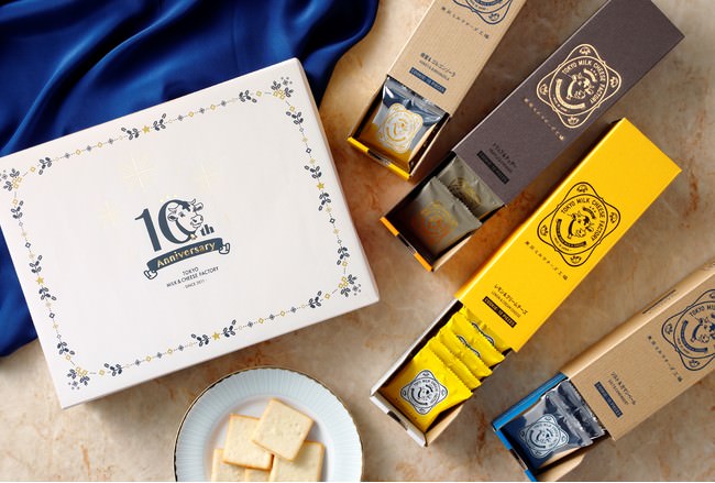ブランド10周年を記念したプレミアム商品として、香り豊かなトリュフにチーズの美味しさを掛け合わせた「トリュフ&チェダークッキー」や、トリュフ&チェダークッキーを含む4種のクッキーを一度に楽しめる「10周年記念クッキー詰合せ40枚入」を10周年記念パッケージでご用意いたしました。