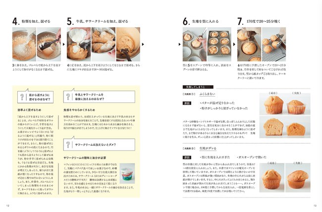 失敗例も写真とともにその理由や、リカバーする方法が詳しく解説されているので、お菓子作りの疑問が全て解決できます。