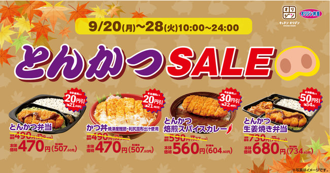 弁当・惣菜専門店「オリジン弁当」「キッチンオリジン」を展開しているイオングループのオリジン東秀株式会社(本社:東京都調布市/代表:沢村 弘也)は、9月20日(月)から9月28日(火)の間、10時から24時限定で『とんかつSALE』を開催し、とんかつが入ったお弁当をオトクな価格で販売いたします。