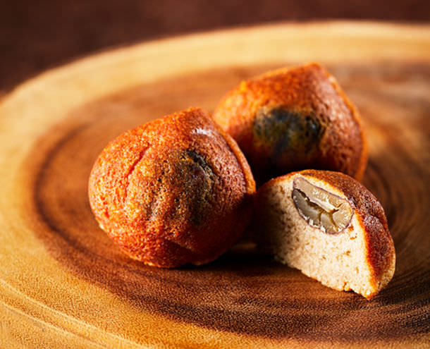 まろやかなマロンペーストをたっぷりと練り込んだ生地に、栗の渋皮煮を贅沢に丸ごと1粒包み、1つ1つ丁寧に焼き上げました。焼き上がりにラム酒を吹きかけるひと手間が、風味豊かなパウンドケーキに仕上げるポイント。改良を積み重ねてようやくたどり着いたリピーター続出の不動の人気パウンドケーキです。コロンとした栗の形もかわいらしく、一口頬張ると栗の旨みが口いっぱいに広がり、幸せな気持ちになれるスイーツは、季節のご挨拶などのご贈答にもぴったりです。